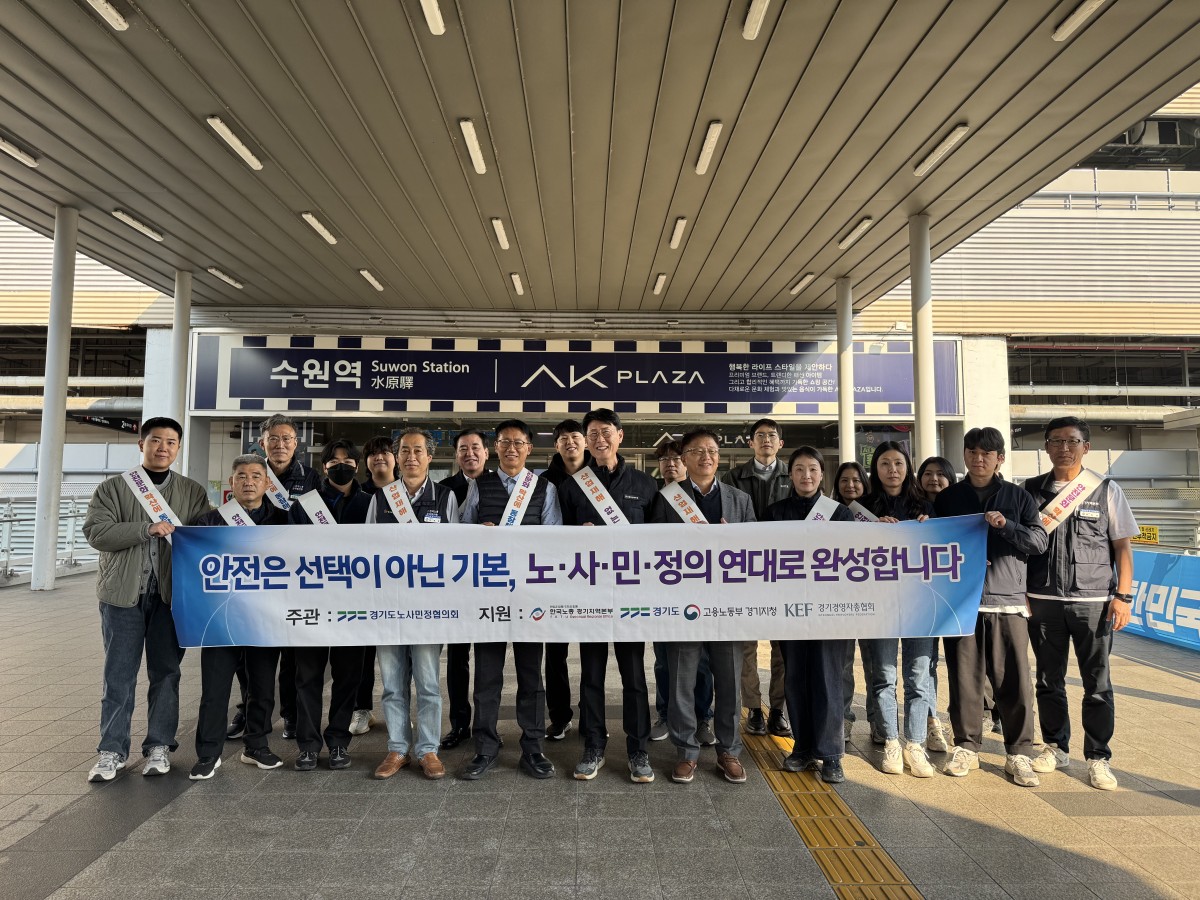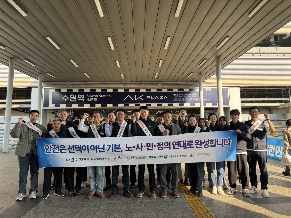 경기도 노사민정협의회는 4일 수원역 환승센터 일대에서 ‘안전문화 확산을 위한 공동캠페인’을 개최했다고 밝혔다.