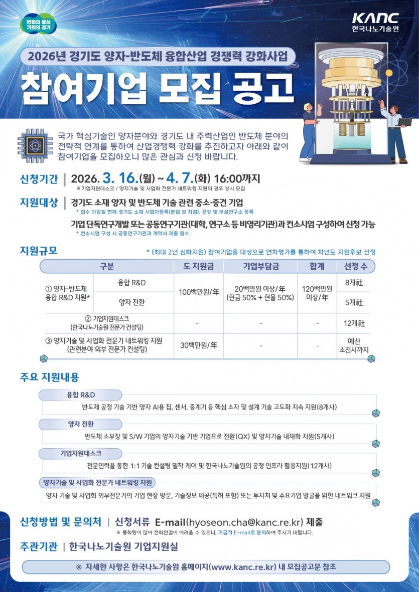 [2026년 경기도 양자-반도체 융합 산업 경쟁력 강화 사업 참여 기업 모집 공고] 안내