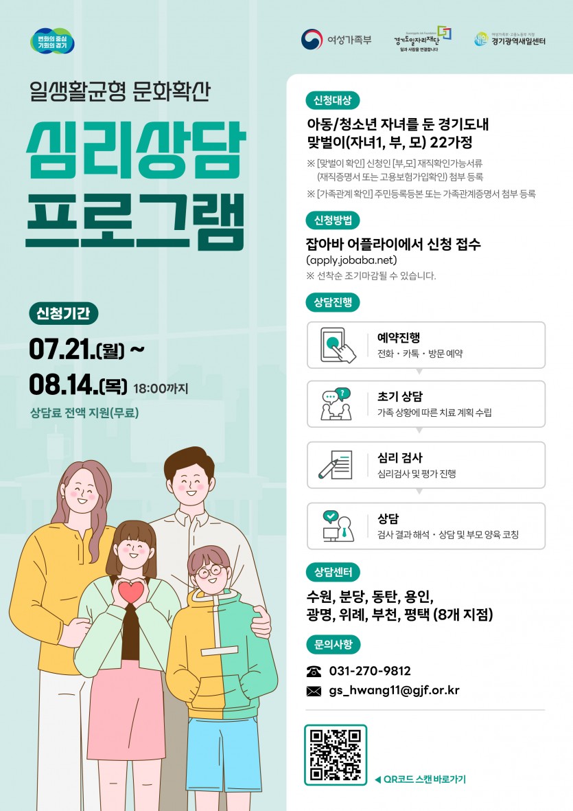 [2025년 일생활 균형 문화 확산 심리상담 프로그램 참여자 모집] 안내