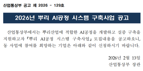 [2026년 뿌리 AI공정 시스템 구축사업 공고] 안내