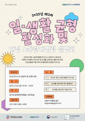 (마감) 2025년 제2차 일생활 균형 활성화 개정 노동관계법령 설명회 참여기업 모집