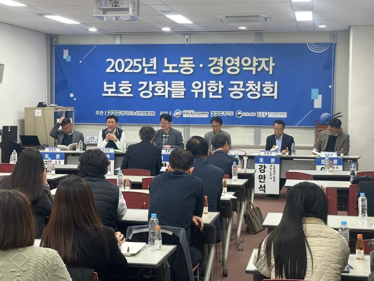 경기도 노사민정협의회는 10월 31일 경기종합노동복지회관에서 ‘2025년 노동·경영약자 보호 강화를 위한 공청회’를 열었다.