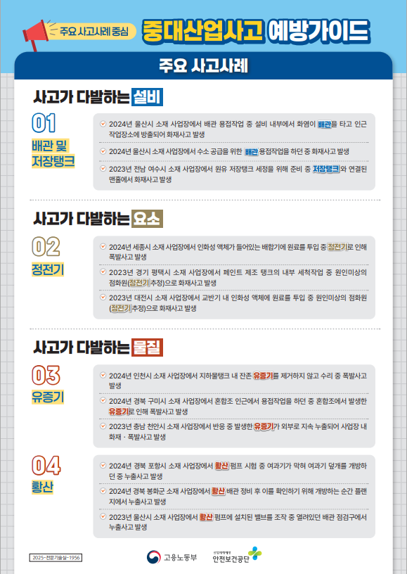 고용노동부와 산업안전보건공단에서 제작한 「중대산업사고 예방가이드」 주요사례를