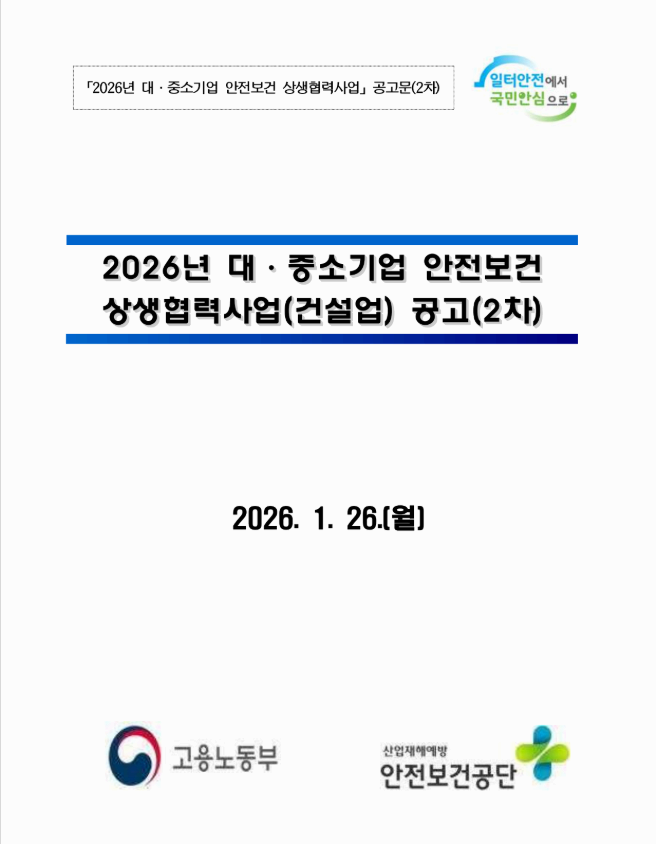 [2026년 대중소기업 안전보건 상생협력사업(건설업) 공고(2차)] 안내