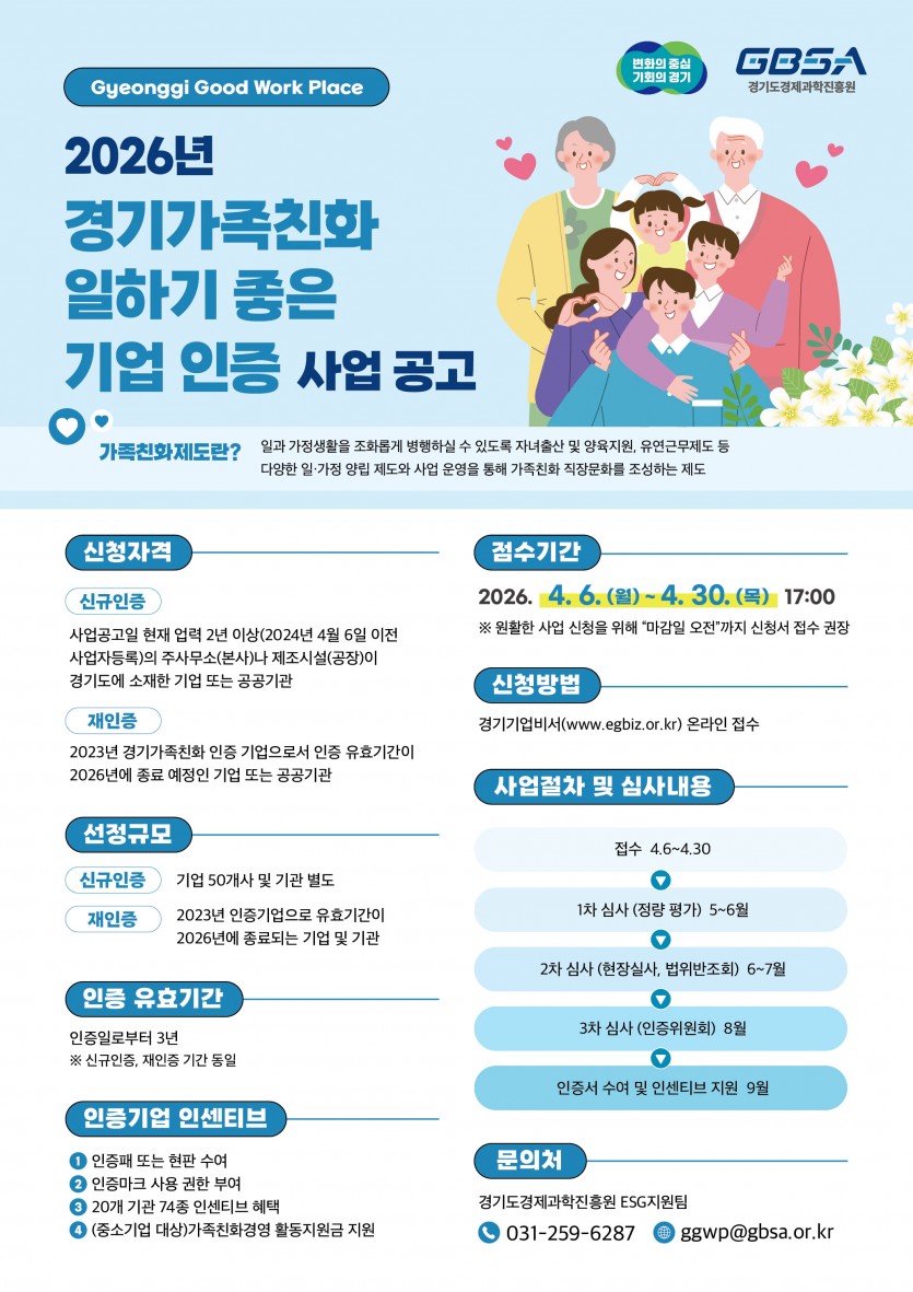 [2026년 경기가족친화 일하기 좋은 기업 인증 사업 공고] 안내