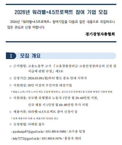 [2026년 워라밸+4.5 프로젝트 참여기업 모집] 안내