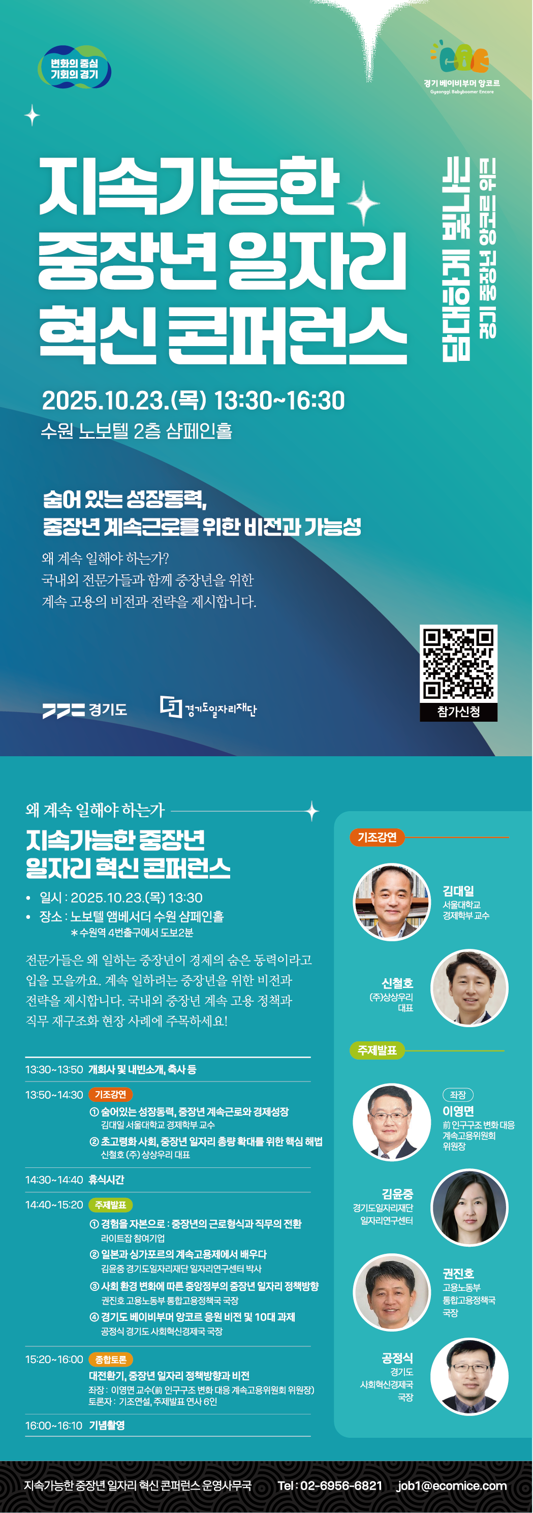○ 참석대상: 정부 및 지자체, 기업 및 유관기관 관계자, 대학·학계 전문가, 중장년 일자리 및 정책에 관심있는 시민 등